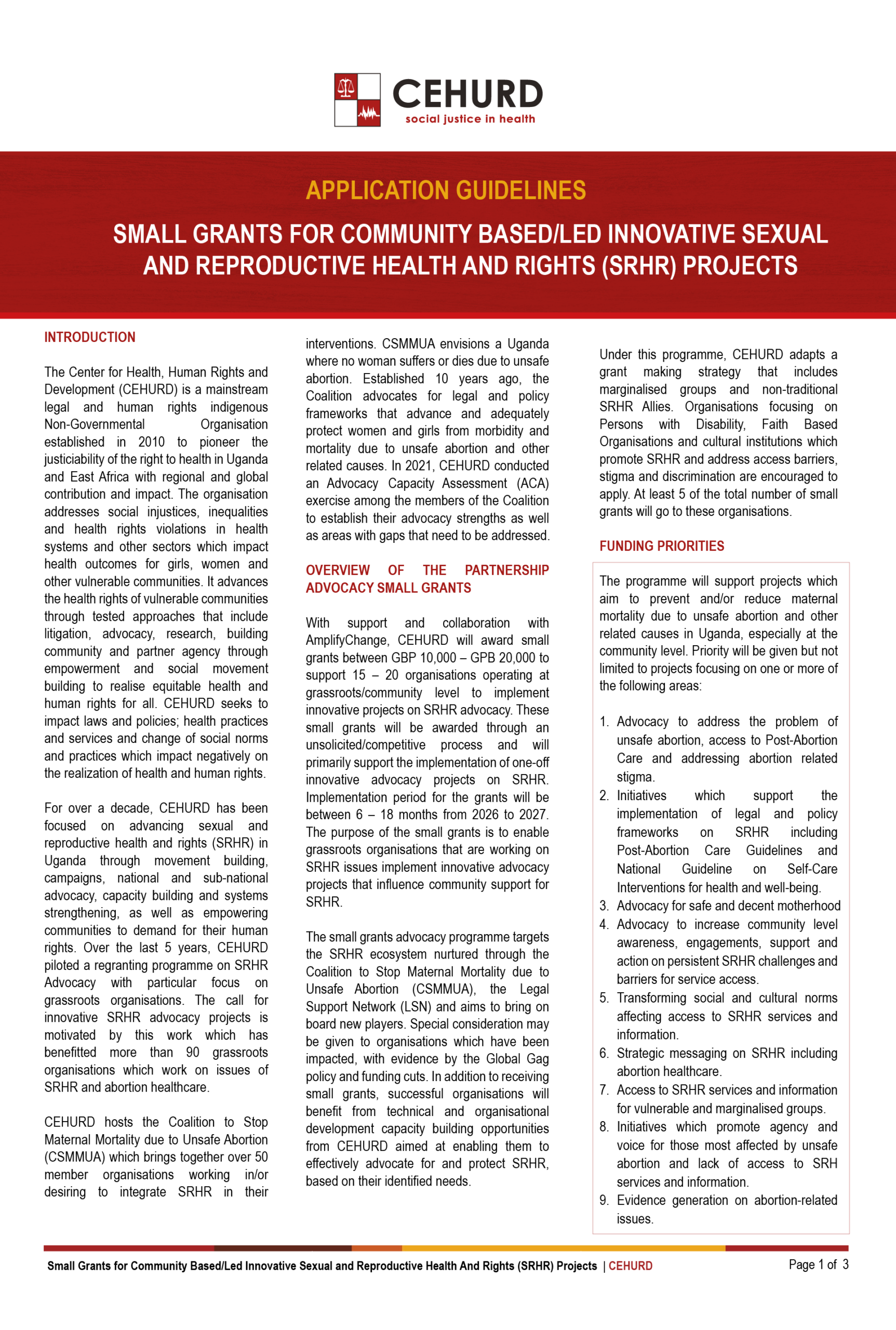 With support from Amplify Change, CEHURD is opening up a new round of small grants worth £10,000–20,000. We’re looking to support 15–20 community-level organisations ready to push bold, practical ideas that advance SRHR advocacy.